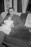 Title: Mr. Martin Van Cooten and Baby Emily in 1947 Part of: Wrathall Photo Finishing Ltd. fonds Level: Item Date: 1947 Physical Description: ["1 nitrate negative : b&w ; 14.5 x 9.5 cm (referred to as copy 1)", "1 photograph : b&w ; 26 x 21 cm (referred to as copy 2)"] Description: Item consists of Martin Van Cooten sitting on a couch and holding his baby daughter Emily Van Cooten at an unknown location. Handwritten annotation on recto of copy 2 reads: "Martin Van Couten [sic] & Baby. 1947." Stamped annotation on verso of copy 2 reads: "Photo by Jack Wrathall Prince Rupert, B. » View details and larger image |