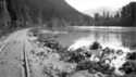 Title: Repairing Railway Tracks After the Skeena River Flood of 1936 Part of: Wrathall Photo Finishing Ltd. fonds Level: Item Date: 1936 Physical Description: ["1 nitrate negative : b&w ; 6 x 10.5 cm (referred to as copy 1)", "1 photograph : b&w ; 26 x 21 cm (referred to as copy 2)"] Description: Item consists of men repairing CN Railway track after the Skeena River Flood. Handwritten annotation on recto of copy 2 reads: "Repairing Track After Big Flood. Skeena River. 1936." Stamped annotation on verso of copy 2 reads: "Photo by Jack Wrathall Prince Rupert, B. C." View details and larger image |