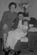 Title: Ralph and Marg Smith (nee Kelly) with Daughter Cecile on January 9, 1949 Part of: Wrathall Photo Finishing Ltd. fonds Level: Item Date: January 9, 1949 Physical Description: ["1 nitrate negative : b&w ; 10 x 15 cm (referred to as copy 1)", "1 photograph : b&w ; 9 x 12 cm (referred to as copy 2)", "1 photograph : b&w ; 21 x 26 cm (referred to as copy 3)"] Description: Item consists of from left to right: Ralph Smith, Baby Cecile Smith and Marg Smith (nee Kelly) posing for a photograph in front of a Christmas Tree at an unknown location. Handwritten annotation on recto of copy 3 reads: "Miller Bay Hosp. X-Ray Tech. Marg. Kelly. Mr. & Mrs. Marg & Ralph Smith. Jan. » View details and larger image |