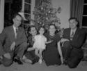 Title: Jack and Stella Mussallem and Daughter Camille with Mr. and Mrs. Tony Crawley on December 27, 1949 Part of: Wrathall Photo Finishing Ltd. fonds Level: Item Date: December 27, 1949 Physical Description: ["1 nitrate negative : b&w ; 10 x 15 cm (referred to as copy 1)", "1 photograph : b&w ; 10 x 15 cm (referred to as copy 2)"] Description: Item consists of from left to right: Tony Crawley, Jack Mussallem, Stella Mussallem with Camille Mussallem on her lap and Mrs. Agnes Crawley posing for a photograph in front of a Christmas tree at an unknown location. View details |