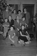 Title: Mr. and Mrs. Martinson and Family on January 2, 1950 Part of: Wrathall Photo Finishing Ltd. fonds Level: Item Date: January 2, 1950 Physical Description: ["1 nitrate negative : b&w ; 9.5 x 15 cm (referred to as copy 1)", "1 photograph : b&w ; 21 x 26 cm (referred to as copy 2)", "1 photograph : b&w ; 21 x 26 cm (referred to as copy 3)"] Description: Item consists of seven members of the Martinson family in a living room at an unknown location. Pictured in the middle of the front row is Don Janz. Handwritten annotation on recto of copies 2 and 3 reads: "Mr. & Mrs. Martinson & Family. Jan. 2 - 1950." Stamped annotation on verso of copies 2 and 3 » View details |