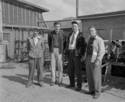 Title: Joe Garries and Three Men on June 28, 1951 Part of: Wrathall Photo Finishing Ltd. fonds Level: Item Date: June 28, 1951 Physical Description: ["1 nitrate negative : b&w ; 10 x 13.5 cm (referred to as copy 1)", "1 photograph : b&w ; 21 x 26 cm (referred to as copy 2)"] Description: Item consists of four men standing outside showing a building under construction in the background, from left to right is: Harry Wilkinson, Joe Garries and two other men. Handwritten annotation on recto of copy 2 reads: "1. Harry Wilkinson. 2. Joe Garries. 3. 4. June. 28, 1951." Stamped annotation » View details and larger image |