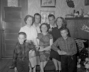 Title: Larson Girls on November 5, 1950 Part of: Wrathall Photo Finishing Ltd. fonds Level: Item Date: November 5, 1950 Physical Description: ["1 nitrate negative : b&w ; 10 x 13.5 cm (referred to as copy 1)", "1 photograph : b&w ; 21 x 26 cm (referred to as copy 2)"] Description: Item consists of Signe and Nels Jensen, Bertha and Pete Peterson, a woman, a young man and a young boy pose for a photograph at an unknown location. Pictured in the back row, from left to right, is: Signe Jensen, Nels Jensen, Pete Peterson and Bertha Peterson. Handwritten annotation on recto of copy » View details and larger image |
