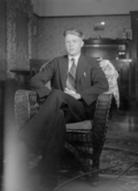 Title: Pete Peterson in 1936 Part of: Wrathall Photo Finishing Ltd. fonds Level: Item Date: 1936 Physical Description: ["1 nitrate negative : b&w ; 17.5 x 12.5 cm (referred to as copy 1)", "1 photograph : sepia ; 17 x 12 cm (referred to as copy 2)"] Description: Item consists of Pete Peterson sitting in a wicker chair and posing for a photograph at an unknown location. Handwritten annotation on verso of copy 2 reads: "Pete Peterson 1930's." View details |