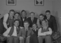 Title: Group of Men in 1935 Part of: Wrathall Photo Finishing Ltd. fonds Level: Item Date: 1935 Physical Description: ["1 nitrate negative : b&w ; 12 x 17 cm (referred to as copy 1)", "1 photograph : b&w ; 21 x 26 cm (referred to as copy 2)"] Description: Item consists of a group of men sitting in two rows at an unknown location. Pictured in the front row from left to right is: George Peters, Tommy Fraser, Martin Van Couten and Sam Germaine. Pictured in the back row from left to right is: George Dibb, Bob Irvine, Trevor Williams, Lee Gordon, Walter » View details and larger image |