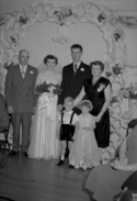 Title: Mr. and Mrs. Ed and Francis (nee Webber) King Wedding on October 5, 1952 Part of: Wrathall Photo Finishing Ltd. fonds Level: Item Date: October 5, 1952 Physical Description: ["1 nitrate negative : b&w ; 9 x 6 cm (referred to as copy 1)", "1 photograph : b&w ; 26 x 21 cm (referred to as copy 2)"] Description: Item consists of Mr. Webber, Bride Frances King (nee Webber), Groom Ed King, Mrs. Webber and two small children posing for a photograph. Handwritten annotation on recto of copy 2 reads: "1. Mr Webber. 4. Mrs. Webber. Mr. & Mrs. Francis [sic] & King. Wedding. Oct. 5 - 1952." Stamped annotation on » View details and larger image |