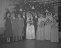 Title: Mr. and Mrs. Ron and Shirley Hurst (nee Robins) Wedding on October 25, 1951 Part of: Wrathall Photo Finishing Ltd. fonds Level: Item Date: October 25, 1951 Physical Description: ["1 acetate negative : b&w ; 10 x 13.5 cm (referred to as copy 1)", "1 photograph : b&w ; 11 x 13 cm (referred to as copy 2)", "1 photograph : b&w ; 21 x 26 cm (referred to as copy 3)"] Description: Item consists of Shirley Hurst (nee Robins) and Ron Hurst standing amongst their wedding guests. Pictured from left to right is: Florence Robins, James Hurst, Gladys Hurst, Harry Robins, Shirley Hurst (nee Robins), Ron Hurst and three other guests including a child. Handwritten annotation on recto » View details and larger image |