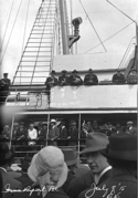Title: Boys on Ship going to the Front at Prince Rupert, B.C. on July 8, 1915 Part of: Dr. R. Geddes Large fonds Level: Item Date: July 8, 1915 Physical Description: ["1 photograph : b&w ; 26 x 21 cm (referred to as copy 1)", "1 photograph : b&w ; 14 x 9 cm (referred to as copy 2)", "1 nitrate negative : b&w ; 15 x 10 cm (referred to as copy 3)"] Description: Photograph depicts men and women on a ship sailing to the front lines in World War I. Caption near the middle of the photo reading "Off to the Front." Beneath three men on the ship are captions reading "A.D.H.," W.B.," and "T.W.S." Caption on the lower left side of the photo reads "Prince Rupert. » View details and larger image |