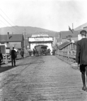 Title: Welcome Arch at Prince Rupert, B.C. in 1908 Part of: Dr. R. Geddes Large fonds Level: Item Date: 1908 Physical Description: ["1 photograph : b&w ; 26 x 21 cm ; (referred to as copy 1)", "1 photograph : b&w ; 14 x 9 cm ; (referred to as copy 2)", "1 nitrate negative: b&w; 14 x 9 cm ; (referred to as copy 3)"] Description: Photograph depicts a welcome arch on a Centre Street bridge. Two horse drawn carriages can be seen coming from the arch. View details and larger image |