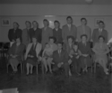 Title: Prince Rupert Fishermen Co-op Meeting at Prince Rupert, B.C. in 1951 Part of: Wrathall Photo Finishing Ltd. fonds Level: Item Date: April 1951 Physical Description: ["1 nitrate negative : b&w ; 10 x 14 cm (referred to as copy 1)", "1 photograph : b&w ; 21 x 26 cm (referred to as copy 2)", "1 photograph : b&w ; 21 x 26 cm (referred to as copy 3)"] Description: Photograph depicts a group of seventeen people gathered together for a Prince Rupert Fishermen's Co-operative Association meeting. The group includes two children. Handwritten annotation on recto of copies 2 and 3 reads: "Co-op Meeting - Apr - 1951. Pr. Rupert, B.C." Stamped annotation on verso of » View details and larger image |