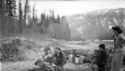 Title: Jack Wrathall and Three Other People Having a Picnic on the Skeena River in 1945 Part of: Wrathall Photo Finishing Ltd. fonds Level: Item Date: 1945 Physical Description: 1 nitrate negative : b&w ; 6.5 x 10.5 cm Description: Item consists of Jack Wrathall, pictured farthest on the left, two women and a child gathered around a campfire during a picnic on the shore of the Skeena River. View details and larger image |