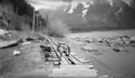Title: CN Railway Tracks and the Skeena River Near Amsbury West of Terrace, BC in 1945 Part of: Wrathall Photo Finishing Ltd. fonds Level: Item Date: 1945 Physical Description: ["1 nitrate negative : b&w ; 9 x 14 cm (referred to as copy 1)", "1 photograph : b&w ; 21 x 26 cm (referred to as copy 2)"] Description: Item consists of a view of CN Railway tracks and siding with a car on the tracks. Near Amsbury West of Terrace. The Skeena River can be seen on the right. Handwritten annotation on recto of copy 2 reads: "C.N. Rail - Skeena - Above Aimsbury [sic]. West of Terrace, B.C. 1945." Stamped annotation on » View details and larger image |