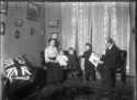 Title: Mr. & Mrs W.W. Wrathall, Bill, Jack & Audrey : Thompson Street Part of: Wrathall Photo Finishing Ltd. fonds Level: Item Date: 1914 Physical Description: 1 glass plate negative : b&w ; 17 x 22 cm Description: Item consists of William Walker Wrathall, Lydia (Lynn) Wrathall and their children Bill, Jack and Audrey in a home on Thompson Street. William can be seen holding a book and smoking a pipe. View details and larger image |