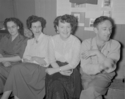 Title: Party at Bill and Jean Murdock's Home on Ambrose Avenue at Prince Rupert, B.C. in 1950 Part of: Wrathall Photo Finishing Ltd. fonds Level: Item Date: 1950 Physical Description: ["1 acetate negative : b&w ; 11 x 14 cm (referred to as copy 1)", "1 photograph : b&w ; 11 x 13 cm (referred to as copy 2)", "1 photograph : b&w ; 11 x 13 cm (referred to as copy 3)", "1 photograph : b&w ; 11 x 13 cm (referred to as copy 4)"] Description: Item consists of three women a one man gathered at a party at the home of Bill and Jean Murdock on Ambrose Avenue. Pictured from left to right is: an unidentified woman, Joan Hicks, Geraldine Holbrook and Art Holbrook. Handwritten annotation on verso of copies 2, 3 and 4 reads: "1950." View details and larger image |