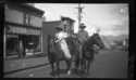 Title: Rodeo from Telkwa Cowboys on 3rd Block of 3rd Avenue at Prince Rupert, B.C. Part of: Wrathall Photo Finishing Ltd. fonds Level: Item Date: [ca. 1930] Physical Description: ["1 nitrate negative : b&w ; 7 x 12 cm (referred to as copy 1)", "1 photograph : b&w ; 21 x 26 cm (referred to as copy 2)"] Description: Item consists of four men dressed as cowboys riding horses at the 300 Block of 3rd Avenue West. The cowboys are from a rodeo visiting from Telkwa, B.C. Handwritten annotation on recto of copy 2 reads: "Cow Boys From Telkwa. Holding Rodeo. 300 Blk. 3rd. Ave. 1930." Stamped annotation on verso of copy » View details |