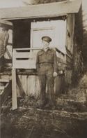 Title: Ross Cassan Part of: Arlene Ashcroft collection Level: Item Date: November 1941 Physical Description: ["1 photograph : sepia ; 8 x 6 cm", "1 acetate negative : b&w ; 5 x 4 cm"] Description: Item consists of Canadian army soldier Ross Cassan standing in front of a building. View details and larger image |