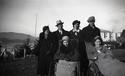 Title: A Group of People on a Road in Prince Rupert Part of: Wrathall Photo Finishing Ltd. fonds Level: Item Date: [193-] Physical Description: 1 nitrate negative : b&w ; 7 x 12 cm Description: Item consists of group of six people, including two women in wheelchairs, standing in a dirt road. The man pictured in the back row farthest on the right is Jack Wrathall. A building can be seen in the background. View details and larger image |