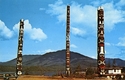 Title: Totem Poles by the Prince Rupert Regional Hospital Part of: Mary Lidstone fonds Level: Item Date: [19--] Physical Description: 1 photograph : col. ; 9 x 14 cm Description: Item consists of replicas of the Beaver Pole of Ninstints, the Grizzly Pole of Skedans and the Eagle Pole of the Gitlakdamix across from the Prince Rupert Regional Hospital on Summit Avenue which is not pictured. Buildings, the harbour and a mountain can be seen in the background. Typed annotation » View details and larger image |