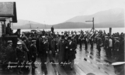 Title: Arrival of Earl Grey at Prince Rupert, BC Part of: Wrathall Photo Finishing Ltd. fonds Level: Item Date: August 21, 1909 Physical Description: 1 photograph : b&w ; 9 x 15 cm Description: Item consists of military officers, naval sailors and men wearing suits at a ceremony to celebrate the arrival of Canadian Governor General Earl Albert Grey at a dock. Handwritten annotation on recto reads: "Arrival of Earl Grey of Prince Rupert, BC. August 21st 1909. Allen Photo." Stamped » View details and larger image |