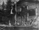 Title: Bill Casey and Jack Miller at Prince Rupert, B.C. in 1906 Part of: Wrathall Photo Finishing Ltd. fonds Level: Item Date: 1906 Physical Description: ["1 photograph : b&w ; 13 x 16 cm (referred to as copy 1)", "1 photograph : b&w ; 13 x 17 cm (referred to as copy 2)"] Description: Item consists of Bill Casey, pictured on the left, and Jack Miller, pictured on the right, standing in front of a cabin. Handwritten annotation on recto of copies 1 and 2 reads: "1. Bill Casey. 2. Jack Miller. Pr. Rupert 1906." View details and larger image |