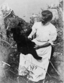 Title: Mrs. Roberson, with Bear Cub Part of: Wrathall Photo Finishing Ltd. fonds Level: Item Date: 1907 Physical Description: ["1 photograph : b&w ; 16 x 13 cm (referred to as copy 1)", "1 photograph : b&w ; 16 x 12 cm (referred to as copy 2)"] Description: Item consists of a Mrs. Roberson sitting a log and holding a bear cub. Handwritten annotation on recto of copies 1 and 2 reads: "Mrs Roberson, with bear cub. 1907." Stamped annotation on verso reads: "Photo by Jack Wrathall Prince Rupert, B.C." View details and larger image |