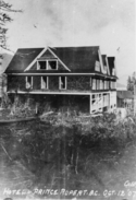 Title: GTP Inn at Prince Rupert, B.C. in 1907 Part of: Wrathall Photo Finishing Ltd. fonds Level: Item Date: October 12, 1907 Physical Description: 1 photograph : b&w ; 17 x 12 cm Description: Item consists of a view of the GTP Inn on Centre Street and Rupert Road from the side. Handwritten annotation on recto: "Hotel - Prince Rupert, B.C. Oct. 12 '07. E.A.W. Pr. Rupert Inn." Stamped annotation on verso reads: "Photo by Jack Wrathall Prince Rupert, B. C." View details and larger image |