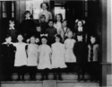Title: Seal Cove School at Prince Rupert, B.C. in 1914 Part of: Wrathall Photo Finishing Ltd. fonds Level: Item Date: April 8, 1914 Physical Description: ["1 photograph : b&w ; 13 x 16 cm (referred to as copy 1)", "1 photograph : b&w ; 13 x 17 cm (referred to as copy 2)"] Description: Item consists of a class of students and their teacher gathered on the front steps of Seal Cove School on 8th Avenue East. Pictured in the front row from left to right is: Bobby Mathieson, Beatrice Kean, Grace Crate, May Owens, Edna Walters, a girl named Mary, Alex Sandy Duncan and Leslie » View details and larger image |