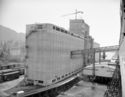 Title: Building East Wing of the Canadian Government Grain Elevator at Prince Rupert, B.C. in 1968 Part of: Wrathall Photo Finishing Ltd. fonds Level: Item Date: 1968 Physical Description: ["1 acetate negative : b&w ; 9.5 x 11 cm (referred to as copy 1)", "1 photograph : b&w ; 21 x 26 cm (referred to as copy 2)"] Description: Item consists of a view of Canadian Government Grain Elevator during construction of the east wing. CN Railway tracks and train cars and houses can be seen on the left. Handwritten annotation on recto of copy 2 reads: "Building East Wing to Pr. Rupert Elevator. Nearing Completion 1968." Stamped » View details and larger image |